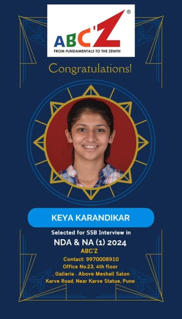 ABC'Z Coaching Classes, Kothrud offers result-oriented NDA & NA coaching in Pune for students aspiring to join the Indian Army, Navy, and Air Force. Our structured training focuses on written exam excellence, SSB interview preparation, and physical readiness, helping students build confidence and discipline to succeed.