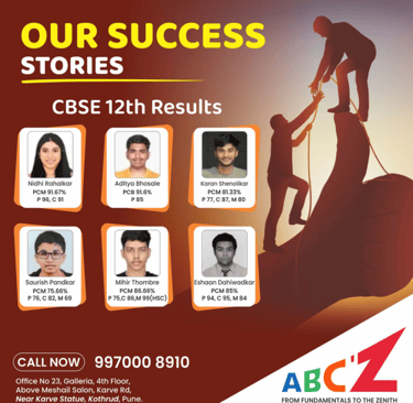 At ABC'Z Coaching Classes, Kothrud, we provide comprehensive and result-oriented Class 12 CBSE Science coaching for PCM and PCB students, focusing on board excellence and competitive exam readiness.