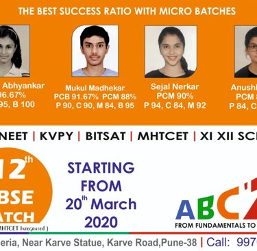 ABC'Z Coaching Classes, Kothrud is a well-established and result-oriented coaching institute in Pune, committed to providing quality education and academic excellence for school students and competitive exam aspirants. With a strong focus on concept clarity, disciplined learning, and consistent performance, we have earned the trust of students and parents across Kothrud and nearby areas.
